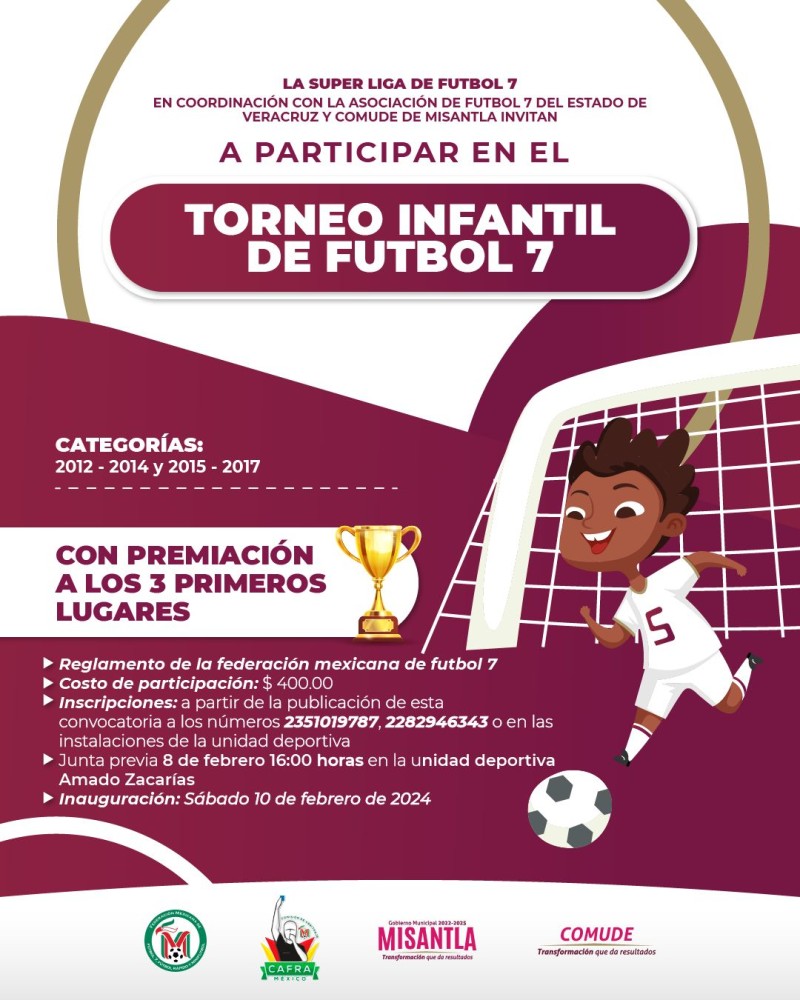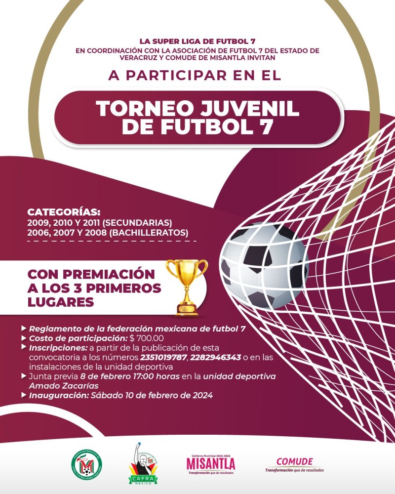 Misantla, Ver.- El H. Ayuntamiento de Misantla que encabeza el alcalde Javier Hernández Candanedo, en colaboración con la Comisión Municipal del Deporte y la Asociación de Fútbol 7 del Estado de Veracruz, anunció el lanzamiento de la convocatoria para equipos interesados en participar en el torneo que organiza la Super Liga Fútbol 7.