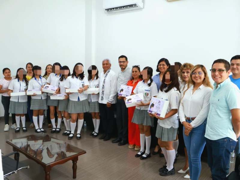 Reconocen a alumnas de la Secundaria José María Mata por participación en obra conmemorativa del 8M
