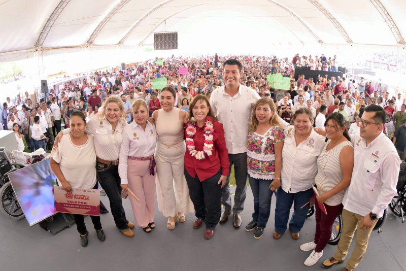 Durante el evento, se entregaron apoyos de los programas “Apoyo a la Palabra – Plan México” y “Apoyo a la Familia”, dirigidos a fortalecer la economía de las familias y mejorar su calidad de vida.